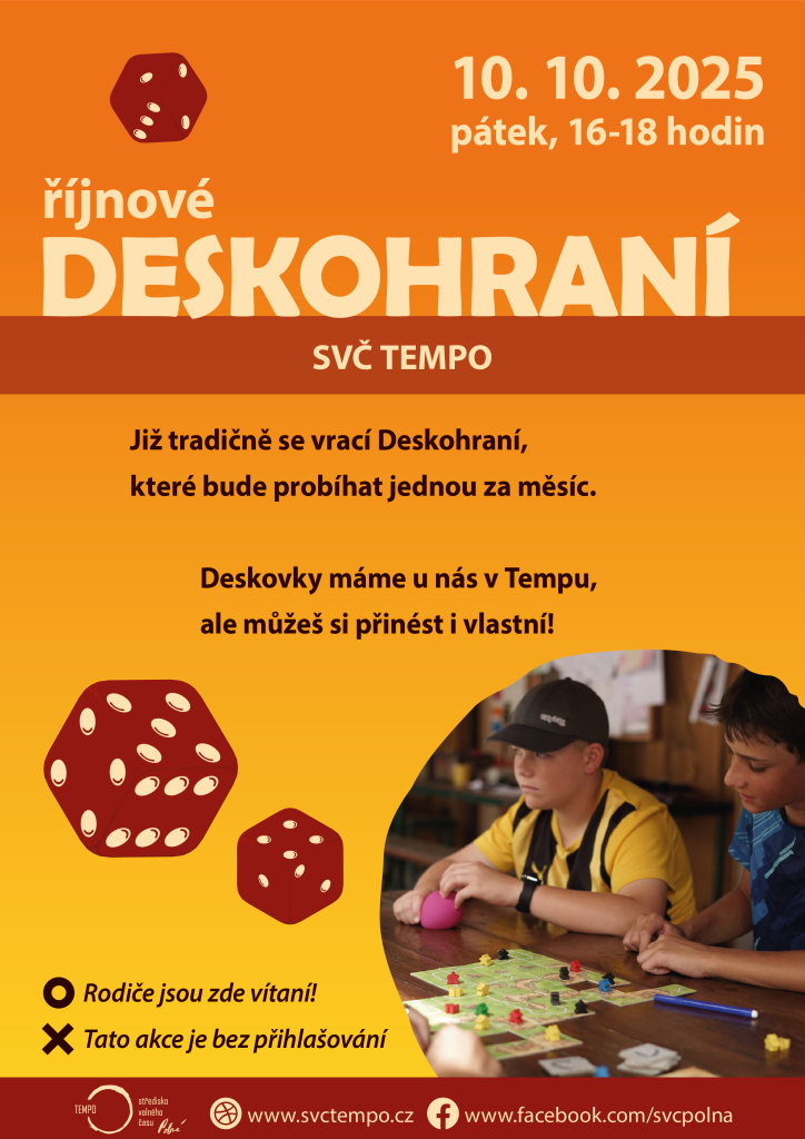 Deskovky máme u nás v TEMPU, ale můžeš si přinést i vlastní.