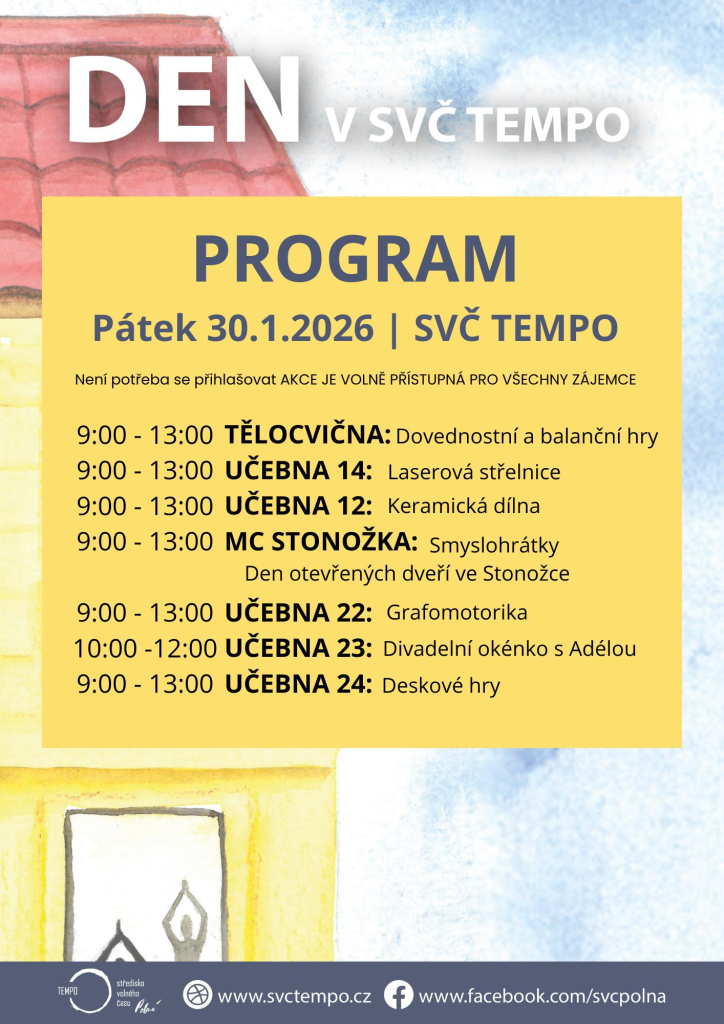 O pololetních prázdninách 30.1.2026 se pro vás brány TEMPA otevřou v 9:00 a máme toho pro vás připraveného opravdu hodně: