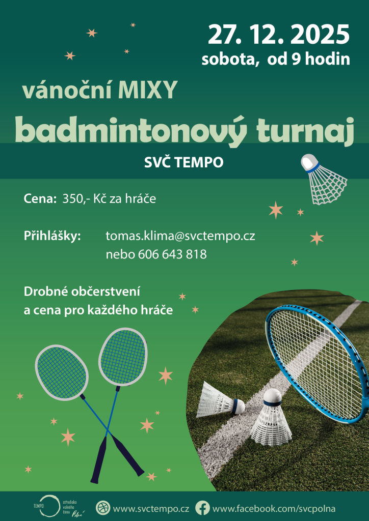 Pro účast v turnaji je doporučené přihlášení předem na e-mail: tomas.klima@svctempo.cz nebo na mobil: 606 643 818.