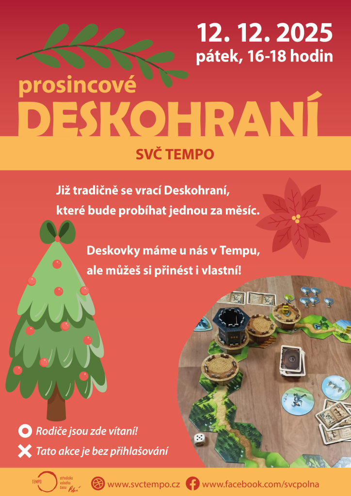 Deskovky máme u nás v TEMPU, ale můžeš si přinést i vlastní.